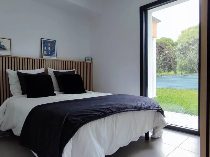 Cet hébergement est une dépendance attenante à notre maison, avec laquelle elle partage un balcon. Une petite séparation végétalisée assure une certaine intimité.