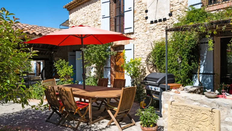 Environné des vignes prestigieuses de Gigondas, près des montagnes, avec une vue panoramique jusqu’au Cévennes, le Mas de Lencieu est un lieu d’exception, calme et ressourçant. La bâtisse est orientée ouest et dispose d’une grande terrasse avec une vue magnifique sur les vignes et la Vallée du Rhône. Une petite haie d’olivier borde l’accès au gîte. Vous pouvez garer votre voiture sur des places privées à proximité du Mas. Une rampe à pente douce permet d’accéder jusqu’au gîte. Christine et Jean-Pascal se réjouissent d’accueillir les hôtes dans cette magnifique bâtisse de caractère et de leur mettre à disposition tous les équipements, services et documentation nécessaires pour leur séjour de trois jours et plus. De nombreux circuits à vélo ou à pied à proximité permettent de découvrir cette célèbre région du Ventoux.