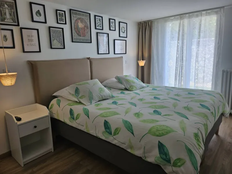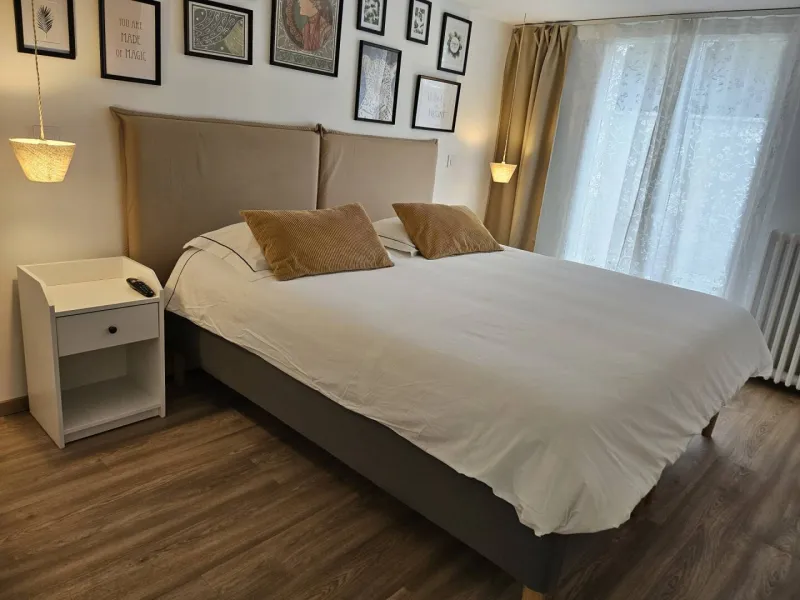 Les commerces sont accessibles à pied.Le gîte est équipé d'un lit en 180 x 200 ou 2 lits en 90 x 200