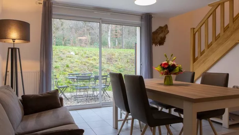 Le logement comprend une terrasse privative aménagée, offrant une vue directe sur le bois de Chaux, idéale pour les moments de détente en extérieur. L'emplacement du gîte garantit un accès immédiat aux sentiers de randonnée et à un parcours sportif, facilitant la découverte des paysages environnants.