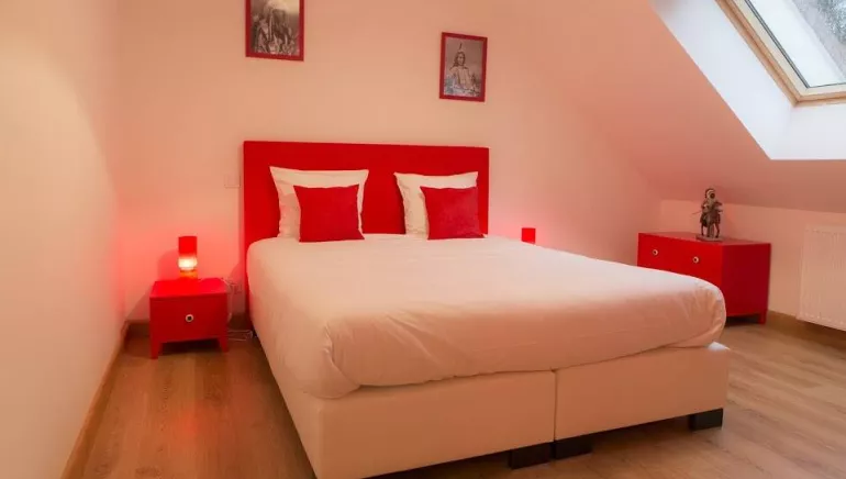 Le Logement Nuage Rouge propose une expérience thématique distinctive, combinant l'espace (75 m²), le confort (4 étoiles) et l'environnement naturel du domaine de 40 ares pour une escapade ressourçante.
