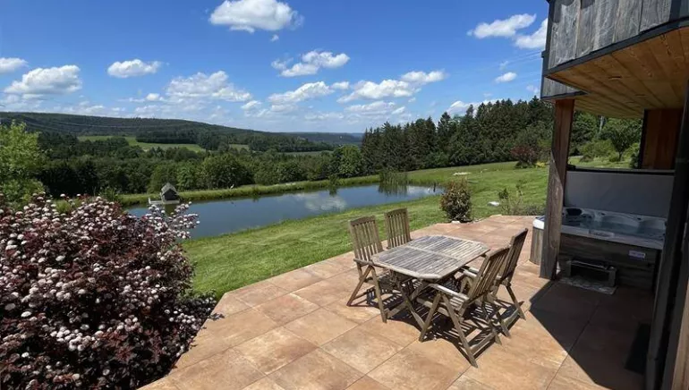 Situé sur les hauteurs du village, sur un grand terrain avec étang, notre écolodge vous offrira une vue à 180 degrés sur la nature et les montagnes.