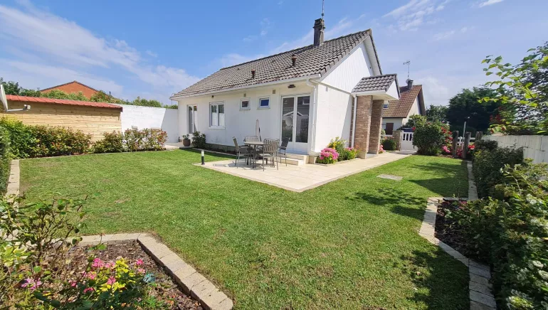 Le gîte Ô de Caps est située à 100 mètres de la plage à Sangatte en plein cœur du Grand Site des Deux Caps. Ce plain-pied lumineux de 75m² est classé 3 étoiles et Accueil Vélo. Il peut accueillir jusqu'à 4 personnes : salon, cuisine entièrement équipée (four, micro-onde, réfrigérateur, lave-vaisselle, cafetière à dosette...), deux chambres doubles avec lits queen-size, salle de bain avec douche à l'italienne (90x120cm), toilettes indépendantes et buanderie. Deux belles terrasses ensoleillées se trouvent dans le jardin arboré et fleuri.