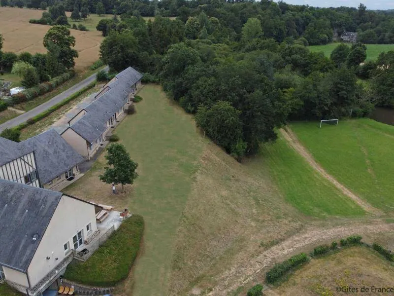 Au coeur du Bocage et du Parc naturel régional Normandie Maine, le Centre de Pleine Nature de Torchamp propose à petits et grands, groupes et familles, de découvrir au travers d'activités sportives - CANOE, VTT, escalade, tir à l'arc, course d'orientation, pêche à l'écrevisse...les richesses de la Normandie.- Bâtiment principal : entrée, 2 salles de réception 50 et 80 m² cuisine collective bloc sanitaire (3 wc) - Dépendance avec 6 unités individuelles de plain pied et entrées indépendantes : 1 unité adaptée aux personnes handicapées : séjour (canapé convertible), chambre dortoir (4 lits superposés 1 personne 90 x 190 cm et 2 lits superposés 80 x 190 cm), salle d'eau, salle d'eau adaptée avec wc séparés. 2 unités comprenant chacune : séjour (canapé convertible), chambre dortoir (4 lits superposés 1 personne 90 x 190 cm et 2 lits superposés 80 x 190 cm), 2 salles d'eau, wc séparés. 3 unités comprenant chacune : séjour (canapé convertible) avec cuisine, chambre dortoir (4 lits superposés 1 personne 90 x 190 cm et 2 lits superposés 80 x 190 cm), 1 salle d'eau, wc séparés. Local de rangement en sous sol. Grand terrain avec buts de foot, cible de tir et rivière en contre bas. PRIX: 80 A 200 EUROS LA NUITÉE PAR UNITÉ DE 8 COUCHAGES (SEMAINE/WEEK-END). Animaux acceptés sous conditions.