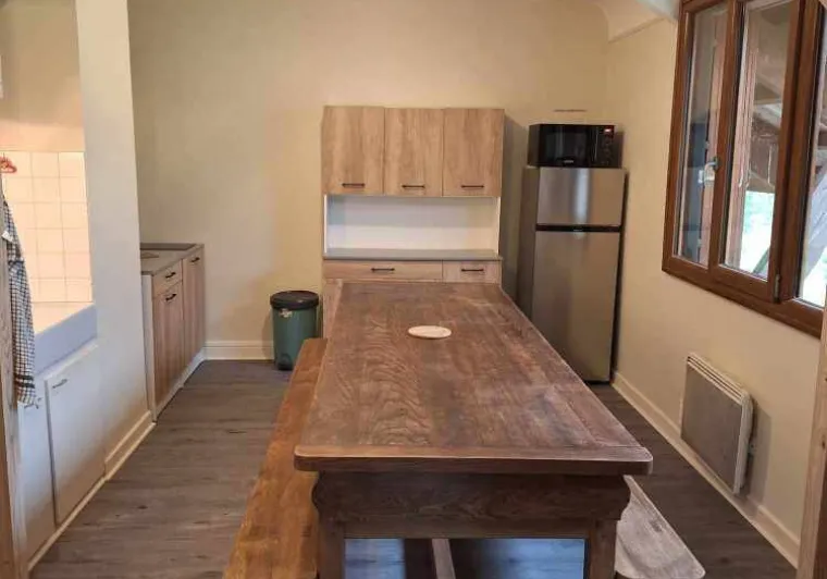 Gite en 2 parties, 18 personnes en bas avec chambres, salle à manger cuisine et jardin avec table de pique nique et en haut chambres, cuisine, balcon et salon de jardin pour manger.Ces 2 parties rende le gite complètement automne pour 2 groupes le hall d'entrée est commun et peut-être utilisé pour un grand groupe