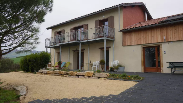 Situé à proximité immédiate de L’Arbresle, très facile d’accès et à moins d’1 km du village, ce gîte bénéficie d’un grand terrain offrant une vue superbe sur Bessenay, la campagne environnante et les vergers de cerisiers. Entièrement rénové dans le respect des normes Bâtiment Basse Consommation (BBC), l’hébergement est accessible aux personnes à mobilité réduite. Il se compose de deux hébergements regroupés : un gîte accès PMR et trois chambres d’hôtes.