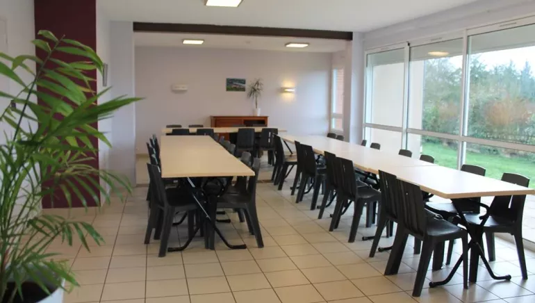 Il dispose d’un bel espace de vie continu de 63 m², comprenant une salle de réception et une cuisine entièrement équipée (four semi-professionnel, réfrigérateur collectif, vaisselle 40pers, lave-vaisselle…).