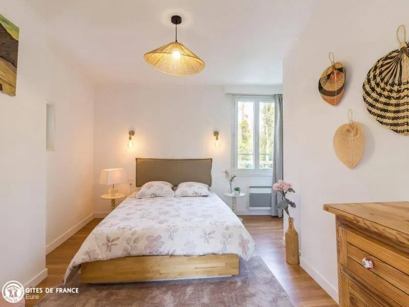 Jérémy et Benjamin vous accueillent à l'Écrin des bords de Seine, une charmante bâtisse rénovée avec goût tout en préservant le cachet de la maison. Tomettes, parquet et cheminée d'ornement ont été conservés et se mêlent de manière réussie aux touches plus modernes de la décoration. Vous serez tout aussi séduits par son emplacement d'exception, sa vue Seine et son accès direct au fleuve pour de belles balades le long du chemin de halage ou une partie de pêche grâce aux cannes mises à votre disposition. Au jardin, les activités ne manquent pas : petits et grands apprécieront la table de ping-pong, le tobogan, le badminton, la cabane, mais aussi les vélos à disposition, parfaits pour rejoindre la base de loisirs de Léry-Poses, riche en activités nautiques, ou le village plein de charme. Vous apprécierez également la proximité du gîte avec le parc animalier Biotropica mais aussi la réserve ornithologique et les différents lacs pour vos sorties nature. RDC : Accès après un petit escalier à l'entrée avec piano accordé puis l'espace cuisine avec cheminée, ouvert sur le passage. Après quelques marches, la salle à manger mène au salon, surélevé de quelques pas. Wc. REZ DE JARDIN : accessible par l'extérieur ou par un escalier intérieur qui descend à la buanderie et donne accès à la chambre marine (lit double 160X200) et la salle d'eau. 1ER ÉTAGE : Chambre rose (lit double 160X200) et chambre bleue (lit double 160X200 séparable). Salle de bain avec baignoire, douche et wc. 2E ÉTAGE: grande chambre (lit double 160X200), bureau et lit enfant 80X190. Jardin de 1500 m² clos de grillage, avec mobilier de jardin sous la pergola, barbecue et plancha. Le passage au niveau de la maison sert de local pêche et donne un accès direct aux bords de Seine et au chemin de halage emprunté par les cyclistes et les randonneurs. Petite terrasse à l'arrière de la maison face Seine. Recharge véhicule électrique sur demande (facturé selon consommation).Localisation