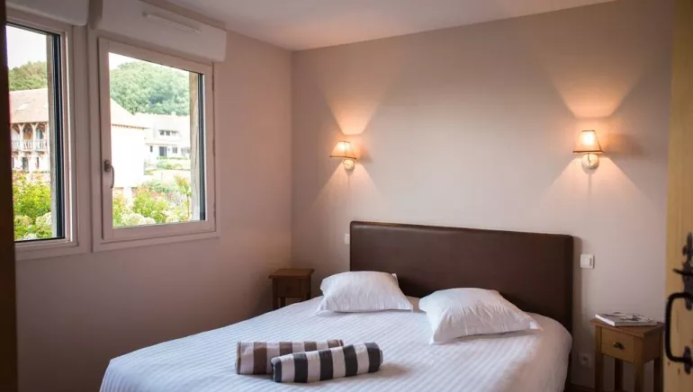Pans de bois et toit de chaume pour cette maison de construction traditionnelle ouverte sur l'estuaire de la Seine et le Pont de Normandie. La décoration raffinée et le confort général vous réservent un séjour serein et détendu. Sur place, piscine couverte et chauffée (du 20 mars à octobre), commune aux 2 autres gîtes. Pour votre confort, le ménage, les draps ainsi que le linge de toilette, et le bois sont inclus dans le prix. RDC : entrée, séjour avec espace cuisine, chambre (1 lit 180x200 cm séparable,), salle d'eau, WC. ÉTAGE : 2 chambres (2 lits 180x200 cm séparables), salle d'eau, WC. A noter, le Domaine propose 2 autres gîtes de 6 et 8 personnes sur place.