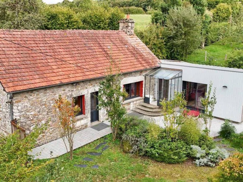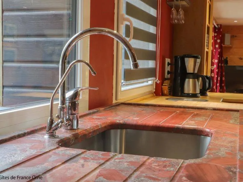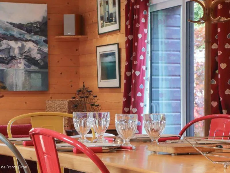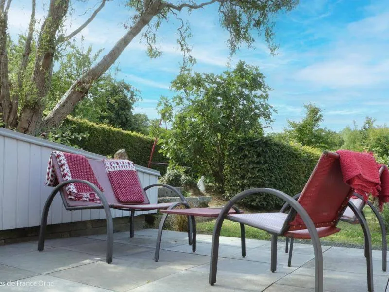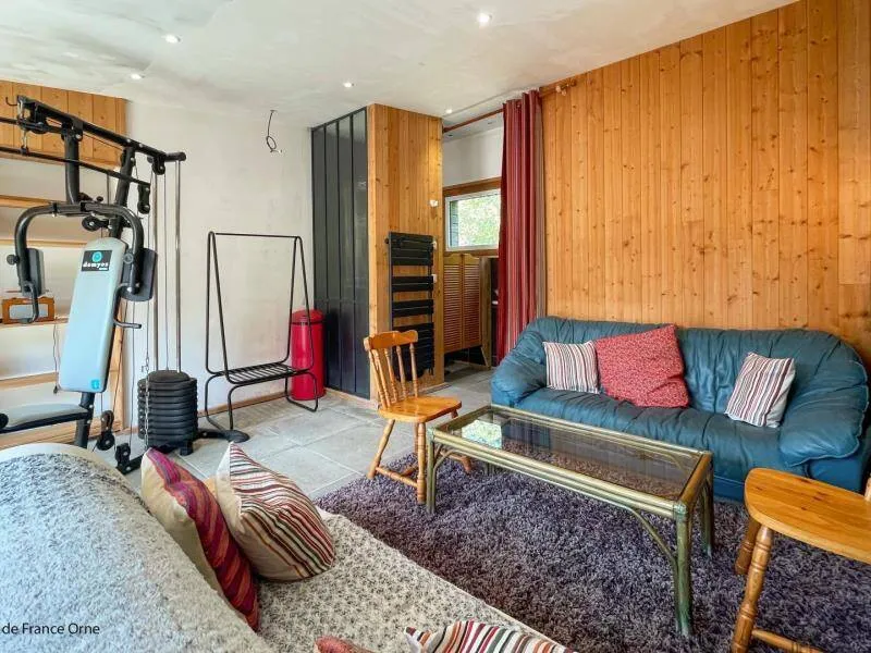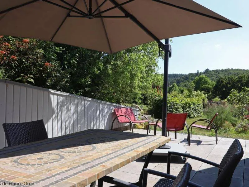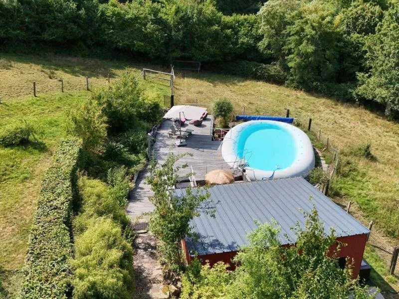 Un environnement exceptionnel sur une propriété de 6 ha entourés d'herbages de chevaux en lisière de forêt d'Ecouves avec le GR36, ce gite a été décoré dans une ambiance chaleureuse de montagne avec des murs en pin, des rideaux rouges et une cuisine en frêne. Ne pas manquer le bain nordique à 40°c de nuit, même en hiver, pour apprécier la tranquillité et écouter la faune nocturne !!! Il est réparateur et relaxant après une journée de balade en forêt, un footing ou une randonnée à vélos; Location de 2 VTT et/ou 2 VTC sur place : 25 euros la journée. Itinéraires de balade à pied et à vélo fournis. Nous partons sur les chemins de la forêt, sur les petites routes de campagne chaque semaine et nous pourrons vous donner de nombreuses idées de balades. Arrivée avancée ou départ repoussé : 25 euros de l'heure (toute heure commencée est due). La piscine est ouverte de 9h à 18 h du 1 er mai à septembre.Propriété entièrement indépendante et isolée. RDC : grande pièce à vivre avec salon et cuisine aménagée (poêle à granulés), chambre avec claustras sur fenêtre du couloir (lit 2 pers. 160 cm), chambre (lit 2 pers. superposés avec lit 1 pers.), salle d'eau, wc indépendant. 2 terrasses. Chauffage granulés et électrique. Alimentation en eau de source. BAIN SCANDINAVE 40°c extérieur 6 pers que vous aurez la joie de mettre en route (environ 3 h) pour 3 soirées. PISCINE (9.3x3.5m, profondeur 1m20) privative de 9h à 18h (partagée avec propriétaire au delà) + 22h pour 2 nuits, et chauffée si nécessaire du 8 mai à mi-septembre. Terrasse 100 m². Balançoire, barbecue gaz. Terrain avec jardin partiellement clos entouré de prés. Tarif pour 5 pers. Si dépassement : +40 €/pers/jour. En complément Roulotte de bohème (lit 2 pers. 160 cm en alcôve) : 200 €/semaine, 100€/week-end et 50€/nuit sup, en face du gîte, exclusivement loué avec le gîte. SOIT UNE CAPACITÉ : 7 PERS. AU TOTAL. Caution CB uniquement