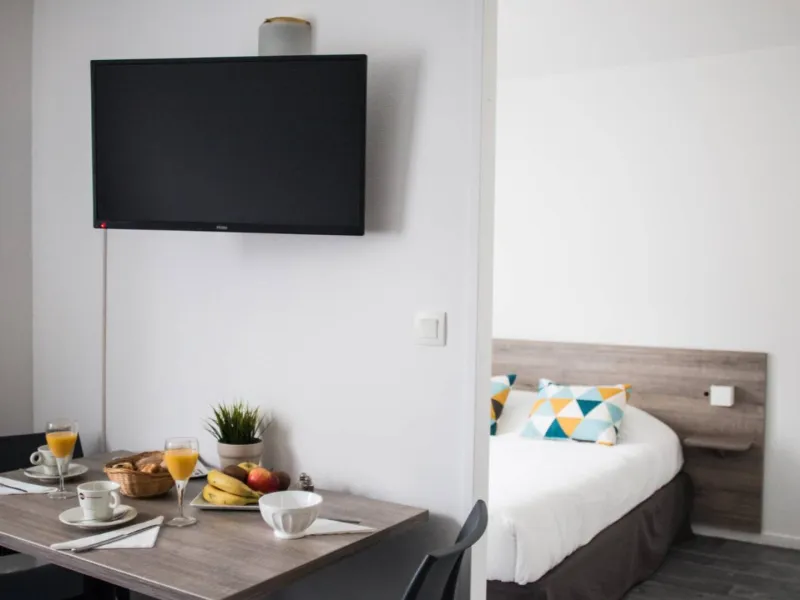 Située à quelques minutes de l’aéroport Bordeaux-Mérignac et du quartier d’affaires Mérignac Phare et facile d'accès, la résidence Zenitude Bordeaux-Aéroport vous accueille dans ses 178 apparts-hôtel, parfaits pour des séjours professionnels ou touristiques, en famille. Nous proposons un parking extérieur sécurisé.Profitez également de moments de détente au bord de notre piscine extérieure ouverte à partir du mois de mai jusqu'au mois d'octobre.