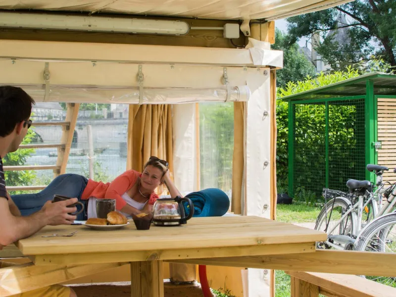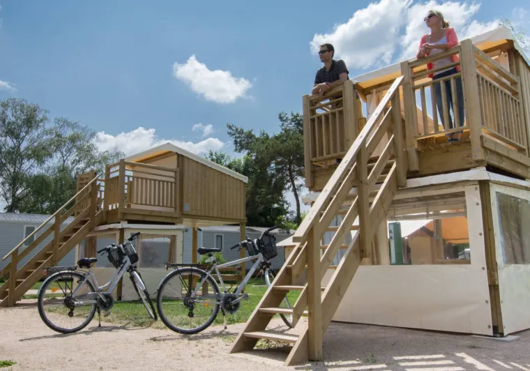 Le Campétoile, c'est un hébergement simple, pratique, ludique, proche de la nature... Profitez de ces deux hébergements avec vue sur la rivière, qui vous évite de monter votre tente. Vous dormez directement sur une toile tendue avec la possibilité, dans la partie supérieure, d'admirer les étoiles. Hébergement idéal pour les cyclistes en itinérance, vous bénéficiez d'une cuisine privative sans point d'eau ainsi que des box sécurisés pour vos vélos. Le matériel de couchage n'est pas fourni dans ces deux hébergements ; il faut donc prévoir tout le nécessaire de couchage : duvets, couvertures, oreillers, éventuellement un matelas fin pour plus de confort... Les animaux ne sont pas acceptés. Le tarif indiqué est valable pour une personne à vélo. Vous avez la possibilité d'ajouter jusqu'à 3 personnes supplémentaires (3€/pers) et un véhicule (2.20 €).Cet établissement vous intéresse ? Rendez-vous sur leur site pour réserver ou en savoir plus.