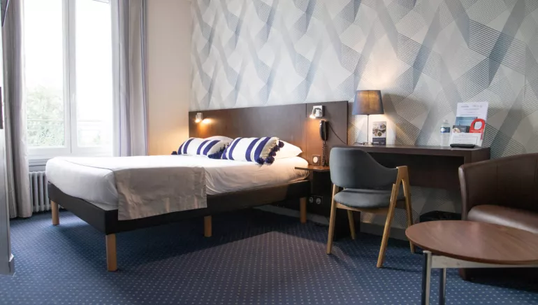 L'hôtel est situé en centre-ville mais dans une rue calme. A 5 mn à pieds de la gare sncf et du Centre des Congrès Le Quartz.