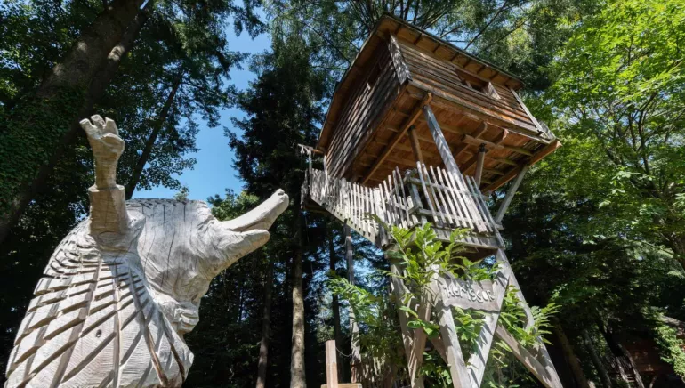 L’ambiance est garantie : le calme, les bruits de la forêt, les oiseaux, les écureuils… tout invite à la contemplation et au repos. Sur place, vous pourrez profiter de randonnées et circuits nature, louer des trottinettes électriques tout-terrain à partir de 14 ans, ou vous amuser avec des jeux en bois, tir à l’arc et autres activités. Un espace détente avec spa est accessible sur réservation pour prolonger ce moment hors du temps.