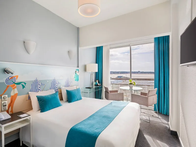 Les chambres, rénovées récemment et entièrement climatisées, proposent confort et sérénité. TV écran plat, plateau de courtoisie, wifi par fibre et belle luminosité créent un cadre idéal pour se détendre. Côté océan, les chambres dévoilent une vue dégagée sur la baie de Royan, avec un panorama remarquable depuis les étages élevés. Une chambre adaptée aux personnes à mobilité réduite complète l’offre.Au dernier étage, la salle de séminaire avec terrasse accueille les réunions professionnelles dans un cadre inspirant. Matériel complet et atmosphère lumineuse renforcent l’efficacité des échanges.