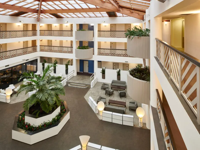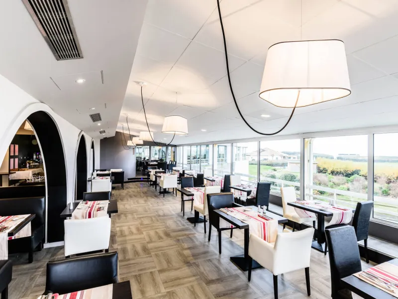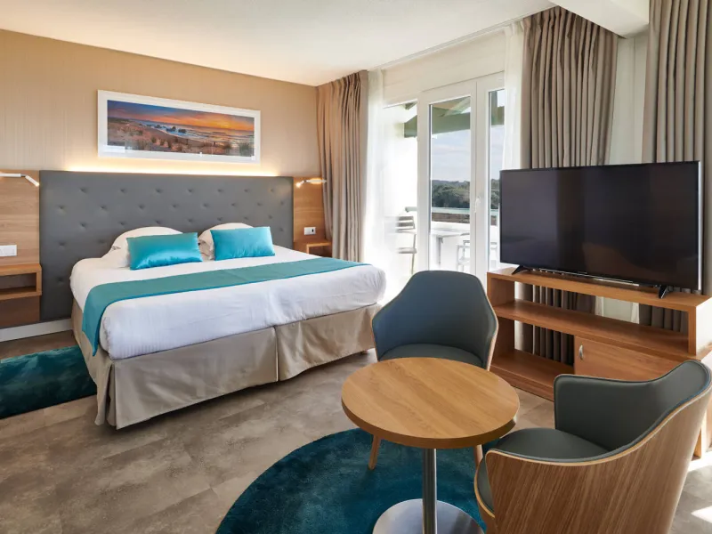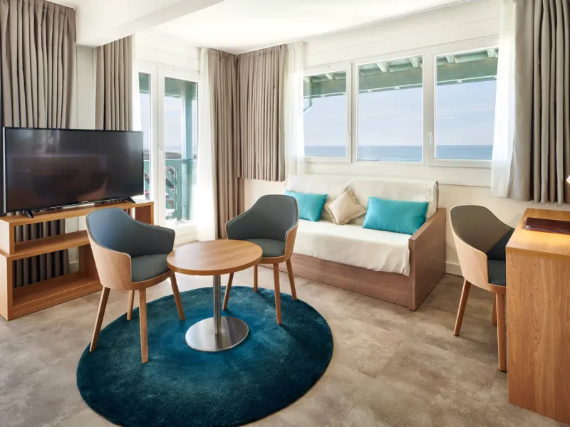 Lumineux et spacieux, un vaste patio aux couleurs chaudes et ambiances boisées dessert les 99 chambres climatisées de l'hôtel. Avec un accès direct à la plage, la terrasse s'ouvre sur une piscine d'eau de mer chauffée (de mai à octobre). Plusieurs formules de restauration :Le Gulf Stream traditionnel - diététique avec plateau de fruits de mer les vendredis soirs, et La Bodega brasserie, bar à tapas avec vue panoramique sur l'océan.