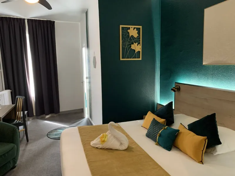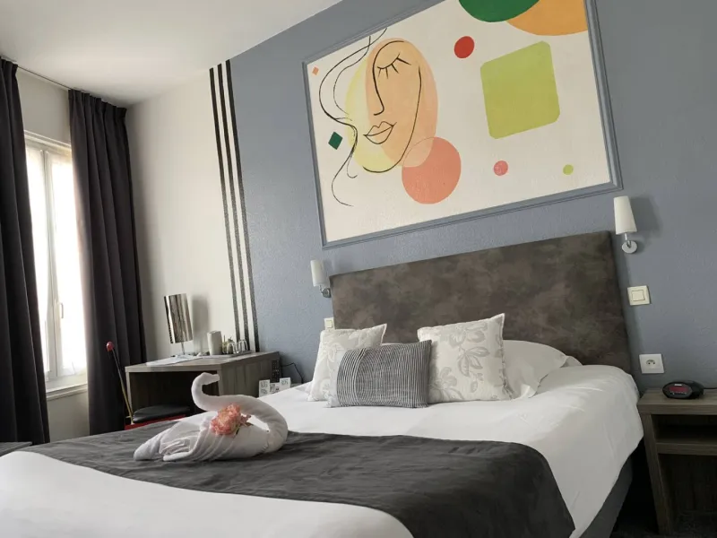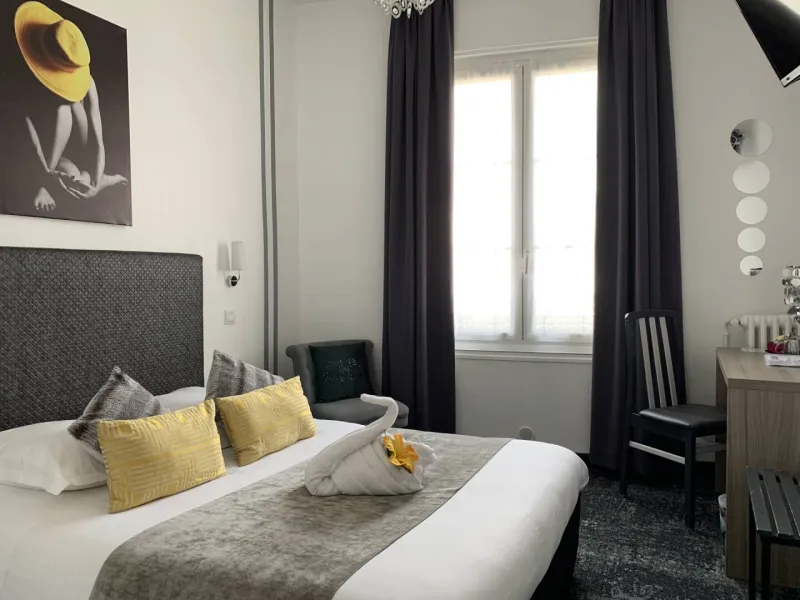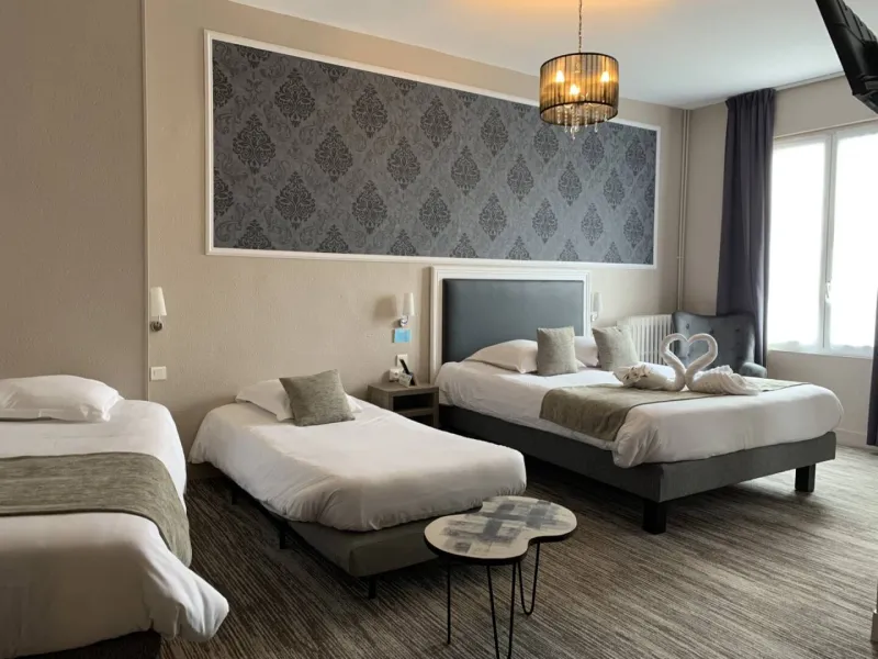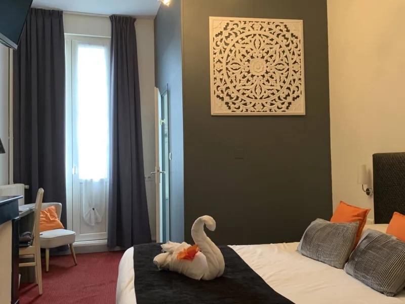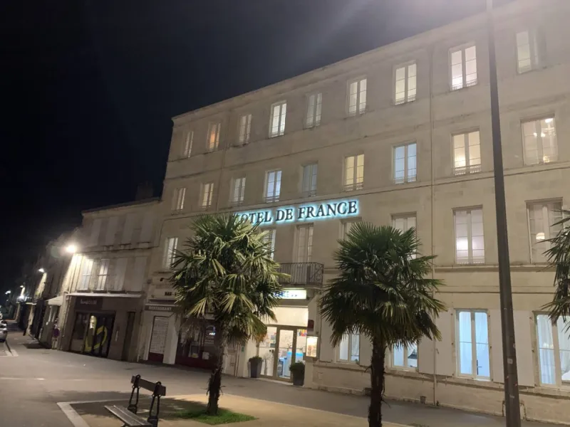 L’Hôtel France propose des chambres spacieuses et trois appart ’hôtels entièrement équipés pour un séjour en toute autonomie. Nous vous accueillons en plein cœur du centre-ville historique de Rochefort, station thermale de caractère. Face à la Poste et l'Office de Tourisme, à deux pas de la mythique place Colbert (souvenez-vous des Demoiselles de Rochefort) et du Palais des Congrès, notre emplacement est tout simplement idéal.Réparties sur trois niveaux, desservis par notre escalier d'époque classé et par un ascenseur pour les 1er et 2è étages, nos 25 chambres disposent des équipements essentiels : climatisation, double vitrage pour votre tranquillité, télévision écran plat, connexion Wi-Fi, plateau de courtoisie... Le confort sans compromis.