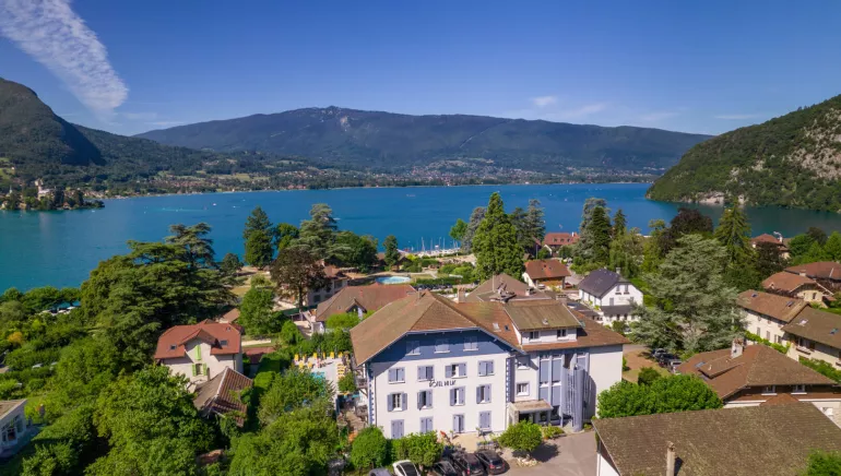 38 chambres et 4 junior suite. Le petit déjeuner buffet est servi à partir de 7h30 jusqu'à 11 heures. Il vous permettra de vitaminer votre journée. Détendez vous au bord de la piscine ou à l'ombre des catalpas, ou profitez de la plage de Talloires en contrebas dont l'accès vous est gracieusement offert par l'hôtel.