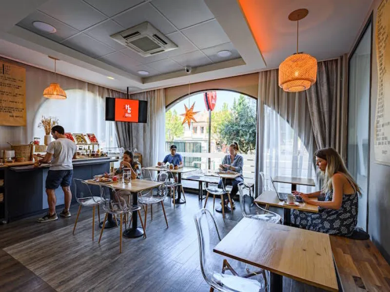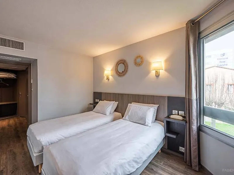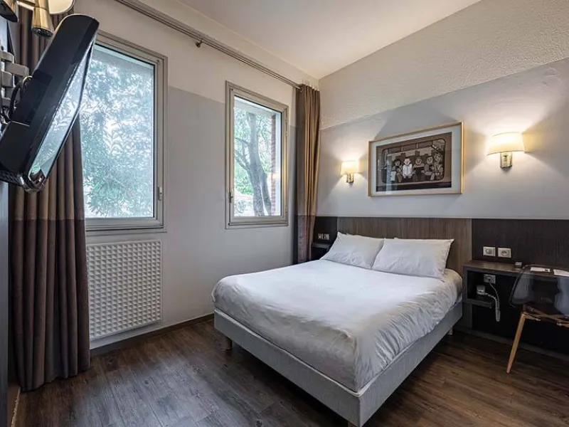 D'inspiration décalée et minimaliste, les œuvres de jeunes artistes français tels que Jean Jullien ou Fere viennent apporter une touche moderne et humoristique à votre cocon.Pratiques, bien équipées et confortables, elles sont parfaites pour vos séjours courts ou des week-ends découverte à Toulouse. Profitez également de notre réception ouverte 24h / 24, de notre bar et de notre room service offert, lui aussi, accessible 24h / 24.