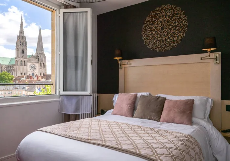 L'arrêt de bus et des navettes gratuites devant l'hôtel permet un accès rapide et facile à l'ensemble des attraits touristiques, culturels, sportifs et économiques chartrains. Occupant un bâtiment 1930, cet hôtel moderne propose de nombreux services haut de gamme qui sauront satisfaire les séjours affaires aussi bien que loisirs. Relaxez-vous dans l'une des 35 chambres et suites, toutes sont climatisées, insonorisées et dotées d'un accès internet gratuit par la fibre en WIFI. Leur salle de bains est pourvue d'une douche, de toilettes, d'un miroir grossissant et d'un sèche cheveux, ainsi d'un peignoir avec chaussons pour les suites.Cet établissement vous intéresse ? Rendez-vous sur leur site pour réserver ou en savoir plus.