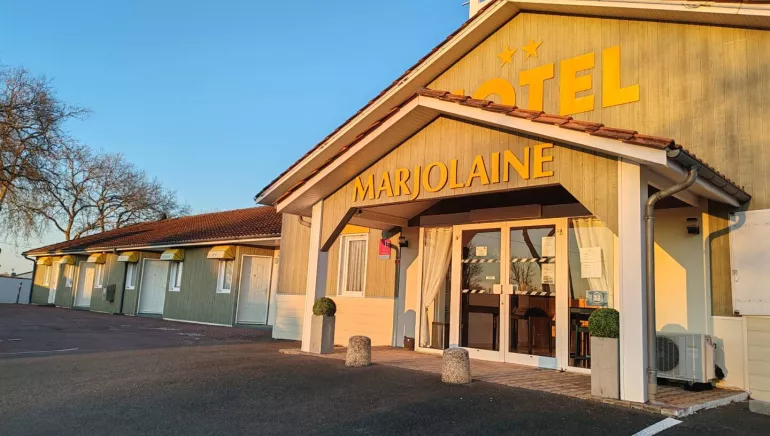 Le Marjolaine possède 30 chambres de 2 à 5 places dont les entrées sont directement sur l'extérieur. Tout de plain pied il offre à toutes ses chambres un petit espace extérieur pour profiter du soleil en été. Totalement climatisé il offre des prestations adaptées aux voyageurs en quête d'un endroit calme pour se reposer lors d'un long voyage. Idéalement situé au bord de la nationale 10 mais très bien protégé du bruit il a été construit sur le modèle motel à l'américaine qui permet à chaque chambre d'avoir sa place de parking au plus près de la chambre, adapté à toutes sortes de situations de handicap. Sa position géographique en pleine campagne mais à seulement 15 minutes du centre ville d'Angoulême lui permet de satisfaire à toutes les attentes de ses clients. A la fois idéal pour les familles en vacances et pour les déplacements professionnels l'hôtel a un partenariat avec le restaurant voisin l'Olivette pour satisfaire la gourmandise de tous. Ouvert tous les jours jusqu'à 21H00 et possédant un système de boîtes à clés l'hôtel permet à sa clientèle toute liberté d'accès de jour comme de nuit.
