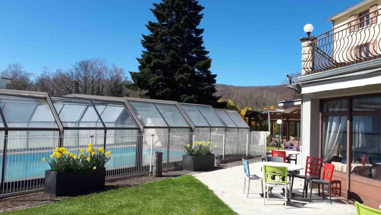 Situé à 755 mètres d'altitude, entre la Plaine de la Limagne et la Chaîne des Puys, l' emplacement est idéal pour se ressourcer et rayonner dans le Parc Naturel Régional des Volcans d'Auvergne. L'hôtel dispose d'une piscine et d' un solarium, et permet un accès immédiat à une multitude d'activités touristiques et sportives.