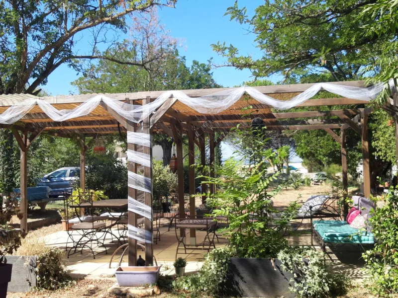En été, les terrasses extérieures vous accueillent dans un écrin de verdure pour vos petits déjeuner et dîners dans une ambiance conviviale. Retrouvez vous autour de la grande piscine pour un moment de détente autour d’un rafraîchissement, très apprécié des retours de randonnées. Soirées musicales improvisées en fonction des envies des convives du soir.
