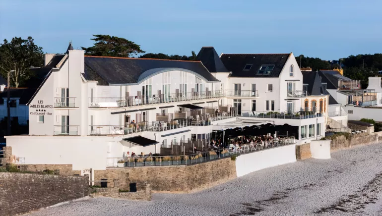 Hôtel les pieds dans l’eau avec vue sur l’océan et accès direct à la plage de sable fin. Décoration contemporaine.