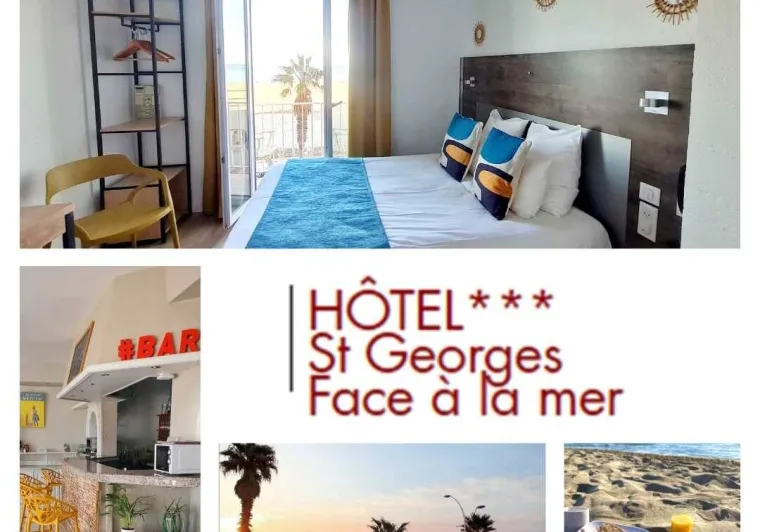 Face à la mer et sa très belle plage de sable fin, proche du centre et du port, l'Hôtel Saint-Georges vous séduira par sa situation exceptionnelle son accueil chaleureux, sa piscine extérieure privée, son patio et ses 23 chambres confortables dont certaines offrent une imprenable vue sur la mer.L'équipe du Saint-Georges vous propose un petit déjeuner buffet complet, gâteau maison, fruits frais, café torréfié à Perpignan, pain et viennoiserie cuits sur place, à déguster en terrasse face à la mer.