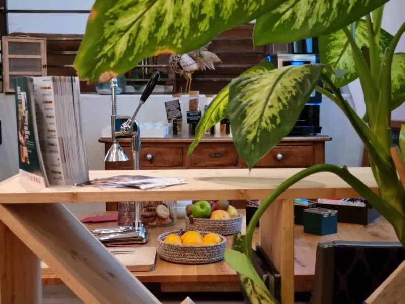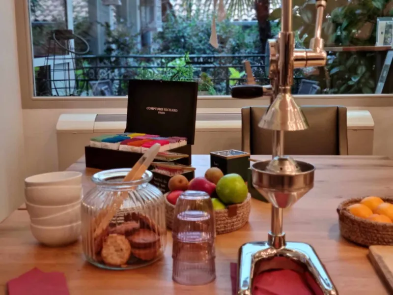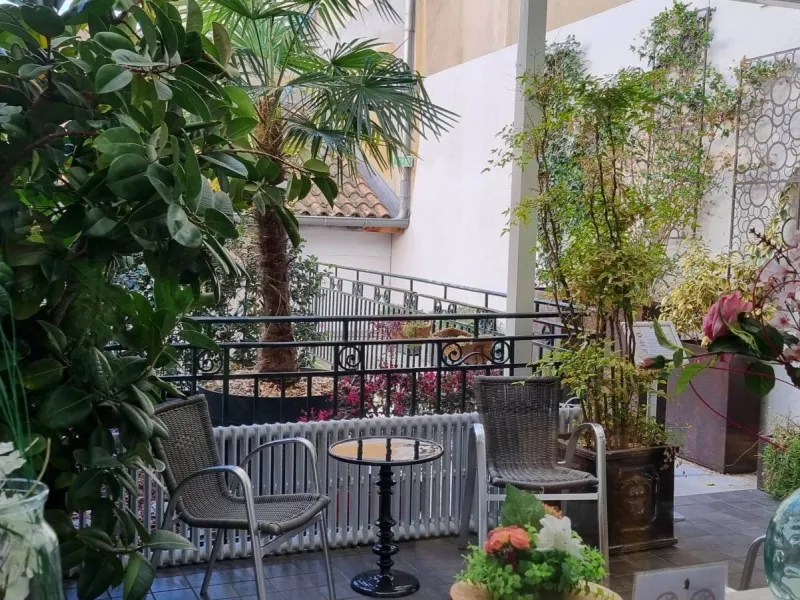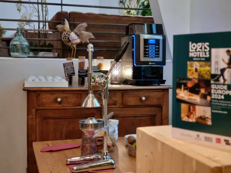 Les clients disposent de l'accès au salon de l'hôtel avec boissons chaudes de 15h à 18h en libre service, du patio ombragé, en saison (de mai à septembre : le bistrot est ouvert de 16h30 à minuit le vendredi et samedi permettant de se désaltérer (boisson chaude ou froide) et collations.