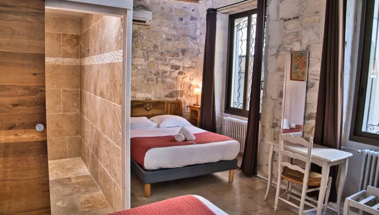 Sur une petite placette calme et ombragée par un superbe olivier, entre la place du Forum et les Arènes, au cœur du centre d’Arles, découvrez l’Hôtel La Muette. Tout au long de votre escale, vous jouirez d’une situation d’exception, tout près de la gare, de petits créateurs pleins de talent et de restaurateurs proposant des plats emplis de saveurs. Vos hôtes et La Muette vous accueillent chaleureusement dans une ambiance familiale et bienveillante, vous serez comme à la maison ! Dans cet hôtel de charme, de 18 chambres, tout a été pensé pour le confort et la douceur de vos vacances en famille, vos week-ends romantiques, vos escales professionnelles, vos road-trips en solitaire et vos retrouvailles entre amis. Laissez-vous envoûter par le labyrinthe de l’hôtel, le raffinement et le charme de la décoration qui allie à la perfection meubles chinés, poutres apparentes, vieilles pierres et équipements modernes.