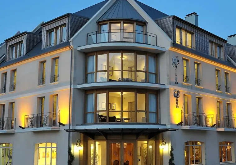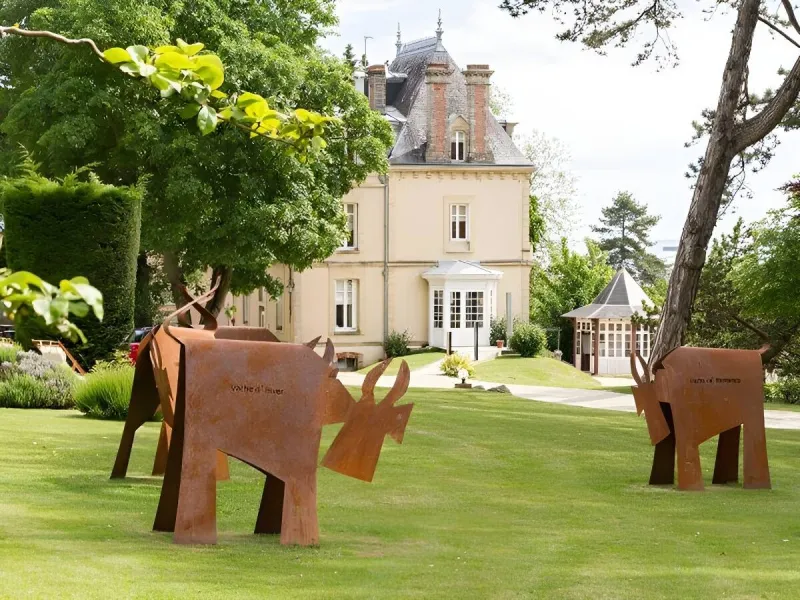 Sur la route de Deauville et du Mont Saint Michel, situées sur les plages du Débarquement, l'hôtel **** Les Villas d'Arromanches se trouvent à 8 km de Bayeux et 18 km du cimetière américain de Colleville sur mer.Au coeur d'un parc arboré, dans un environnement calme, la grande bâtisse en pierre et le bâtiment en colombages du 19e siècle vous accueilleront pour une halte ou un séjour dans des chambres confortables.