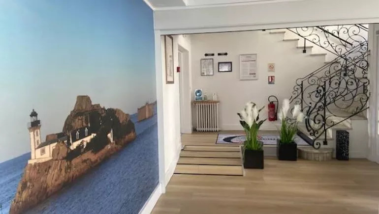 21 chambres classées 3 étoiles au coeur de Carantec (16 chambres double, 2 twin, 2 suites familiales et 1 PMR), petit déjeuner buffet dans une salle récemment rénovée. A proximité immédiate des plages, du GR 34 et du golf de Carantec. Proche également à pied des restaurants et crêperies. Wifi dans toutes les chambres, brochures sur les itinéraires de randonnées, réservation de prestations extérieures, TV et coffre fort dans les chambres. Parking autocars à proximité, accueil groupes. Terrasse et bar licence IV. Abri vélos dans notre sous-sol.