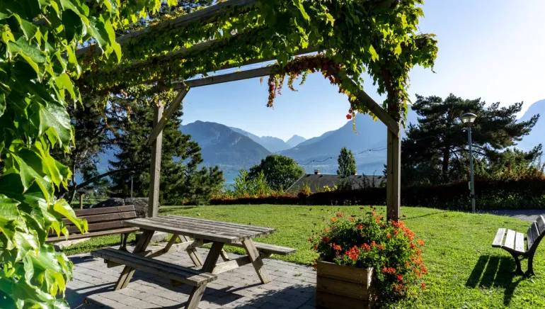Les Balcons du lac d’Annecy, établissement ouvert toute l’année, vous offre le calme et une vue panoramique sur le lac. Une palette de services est à votre disposition : accueil ouvert de 8h à 20h, local montagne, bibliothèque, tennis, volley-ball, tir à l’arc, un bar avec un salon et cheminée, clubs enfants à partir de 3 ans en vacances scolaires. Un programme d’activités et d’animations vous est proposé sur place en journée et en soirée. Piscine extérieure dominant le lac.