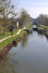 Parcours jalonné tout du long, bien suivre le balisage V2. Quasiment tout le parcours est en site propre. Le revêtement du chemin de halage est en sable compacté assez roulant. Quelques rigoles de ruissellement.
