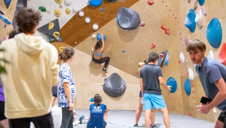 Que tu sois débutant·e curieux·se, grimpeur·se confirmé·e, ou simplement à la recherche d’une activité fun à partager entre amis, en famille, le bloc est fait pour toi. Ici, pas de corde ni de baudrier : tu grimpes librement sur des murs de faible hauteur, en toute sécurité, grâce à de gros tapis de réception. Accessible, ludique et conviviale, l’escalade de bloc, c’est autant un sport qu’un moment de détente et de partage.