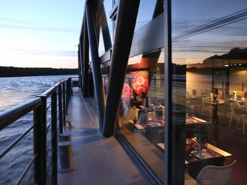 Pour prolonger l’expérience, Bateaux Nantais propose des croisières avec restauration. À l’heure du déjeuner ou du dîner, la navigation devient une véritable expérience sensorielle. Pendant 2h30, les paysages défilent lentement tandis qu’une cuisine raffinée est servie à bord. En soirée, les châteaux illuminés créent une atmosphère féerique, parfois accompagnée d’une animation musicale les vendredis et samedis.