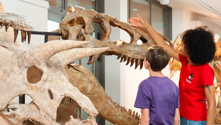 Venez avec vos enfants et petits enfants ! Des images de reconstitution et un discours adapté aux plus jeunes vous permettent d'explorer les lieux en famille. Lla galerie aux dinosaures comblera les envies de toucher et manipuler des fossiles de dinosaures !