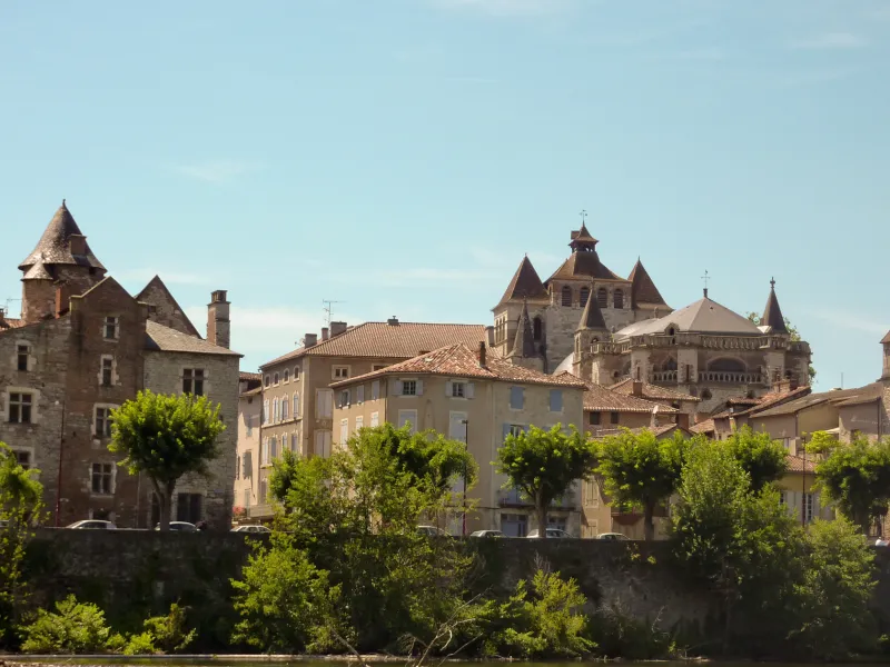 Lové au cœur d’un cingle parfait du Lot, Cahors est au carrefour des voies de circulation depuis fort longtemps. Haut-lieux d’architecture médiévale, la cité cadurcienne ne manque pas d’attraits : les rives du Lot et le fameux pont Valentré, le quartier des Soubirous, la cathédrale Saint-Etienne, les hôtels particuliers, les jardins secrets, ses marchés et restaurants qui en font une étape mémorable sur le chemin de Saint-Jacques et sur La vallée du Lot à vélo. L’office de tourisme de Cahors propose de nombreuses visites.