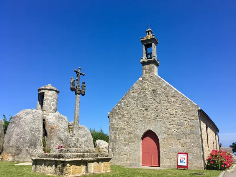 Nichée dans une clairière tranquille, la Chapelle Pol est un exemple typique du petit patrimoine religieux breton. Ses murs en granit et son toit en ardoise évoquent une simplicité rustique, tandis que l’intérieur abrite des éléments sculptés remarquables. Accessible directement depuis La Littorale, ce site respire une sérénité rare et se prête parfaitement à une petite pause pour se dégourdir les jambes ou un encas !