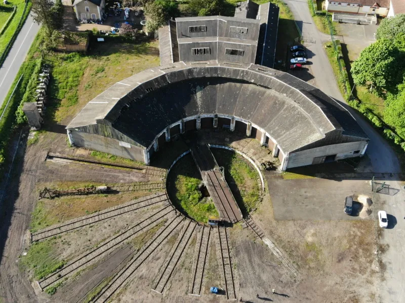 Unique dans l'Ouest, cet ouvrage est un témoignage rare de l'activité ferroviaire du 19e au 20e siècle. Le site se compose d’un bâtiment de 2 500 m² et d’un pont tournant fonctionnel de 24m. 18 machines ou wagons y sont remisés sur les voies intérieures et extérieures.