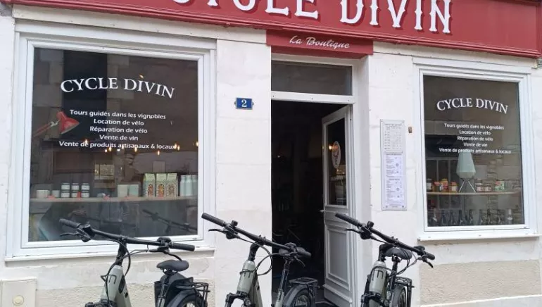 Atelier de réparation de vélos et boutique avec dégustation, vente de vins et de produits artisanaux, expositions.