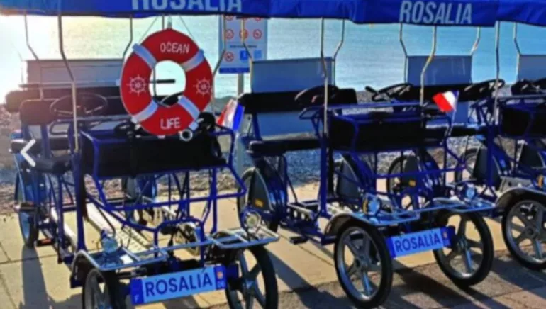 Une Rosalie est un type de véhicule à pédales, généralement utilisé pour les balades en bord de mer ou dans les parcs. Ce véhicule, pourvu de quatre roues et plusieurs places , est conduit en pédalant, ce qui fait une activité de loisirs populaire .
