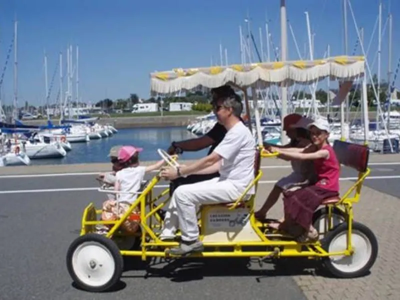 Location VTT, VTC, Tandems, remorques, vélos et sièges enfant, vélos électriques.Vente pièces et accessoires.Location de rosalies : 2 à 8 places, Port du Crouesty.Réparation et vente de cycles.Livraison : nous consulter.Ouvert pendant les week-ends, vacances scolaires et 7j/7 en saison.Bureaux : Port du Crouesty, Zone du Rédo (Arzon), Sarzeau et Damgan.Vivez un bon moment en famille Pour que toute la famille puisse profiter de la balade au même rythme, essayez donc la rosalie ! Ce vélo à quatre roues peut accueillir de 2 à 8 personnes : de quoi pédaler en chœur pour découvrirla côte morbihannaise, et passer un bon moment en famille ou entre amis !Cet établissement vous intéresse ? Rendez-vous sur leur site pour réserver ou en savoir plus.