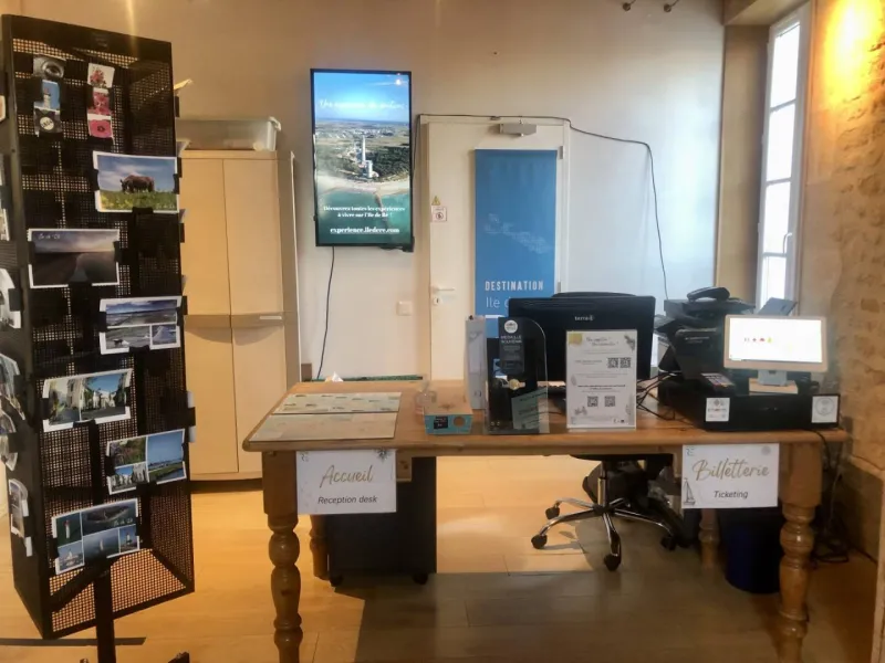 - Boutique : cartes postales, produits locaux (sel, confiture, caramel…), souvenirs (médaille de monnaie de paris, totebag, affiches, stylos…), gamme de produits « Destination Ile de Ré » (gourde, mug, cahier, carnet de voyage pour les enfants…)
