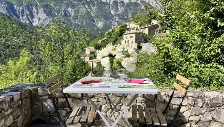 Sur une terrasse avec une vue époustouflante sur le mont Ventoux ainsi que sur le village de Brantes. vous apprécierez le calme devant une assiette de pays, des omelettes digne de faire pâlir La mère Poularde ou bien encore des croquettes aux truffes, et bien toujours nos desserts maison dont l'incroyable Moelleux a la châtaigne. Bière artisanale et vin bio En juillet et en août, les soirées s'animent de concerts qui enchantent la vallée et ce depuis 1995