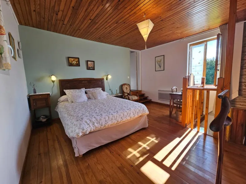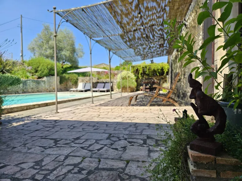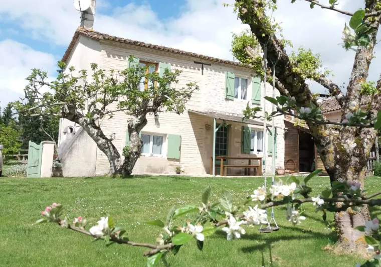 Gîte de charme en pierre pouvant accueillir 4 personnes, avec jardin privé, barbecue et vue sur la forêt. Profitez du cadre extérieur sous le figuier centenaire ou sur la terrasse avec auvent. La maison sur deux étages propose deux chambres doubles, la "chambre aux fleurs" avec un lit double en 160 cm et la "chambre aux oiseaux" avec un lit double en 140 cm. Les lits sont préparés à votre arrivée.Toutes les commodités nécessaires sont à votre disposition, notamment l'accès internet gratuit, le parking sur place et un barbecue. Vous avez également accès à notre parc de plus d’un hectare, à notre piscine partagée (9,5mX4,5m, 150cm de profondeur) et à divers jeux d'extérieur tels que la pétanque, le badminton, les quilles landaises, le rugby, le volley, le tennis... Il ne vous reste qu’à poser vos valises et profiter !