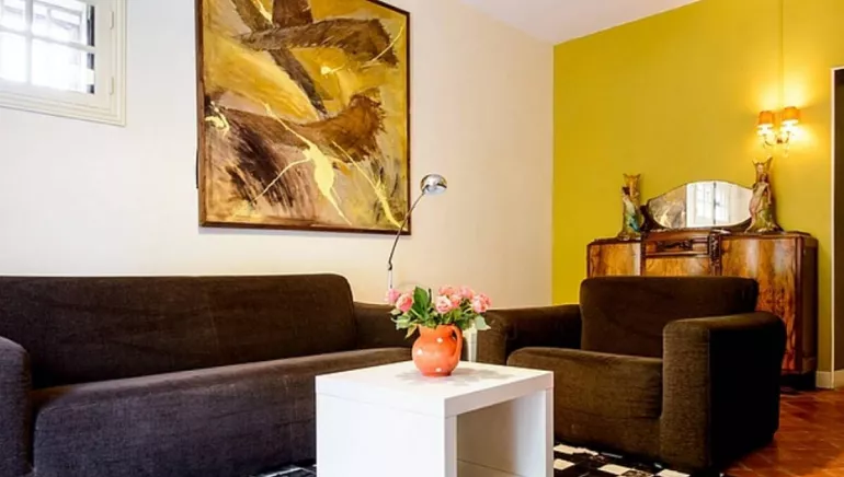 L'appartement ‘de Goyon’ confortable se compose de 2 chambres, d’une grande salle de bains avec baignoire, douche et lavabo double, ainsi que d’une cuisine et de toilettes séparées. La cuisine, complètement équipée, est pourvue de tout confort : un four à micro-ondes et un lave-vaisselle. La salle de séjour, spacieuse et accueillante, possède une belle cheminée authentique, un coin salon confortable, un téléviseur, un coin-repas et bénéficie de la vue sur notre cour. Dans le salon, vous trouverez un grand canapé qui se transforme en lit confortable de 160 x 200cm. L'appartement est à l'entresol, situé entre le rez-de-chaussée et le 1er étage. Un escalier en pierre vous conduit à votre terrasse personnelle et à notre agréable cour.